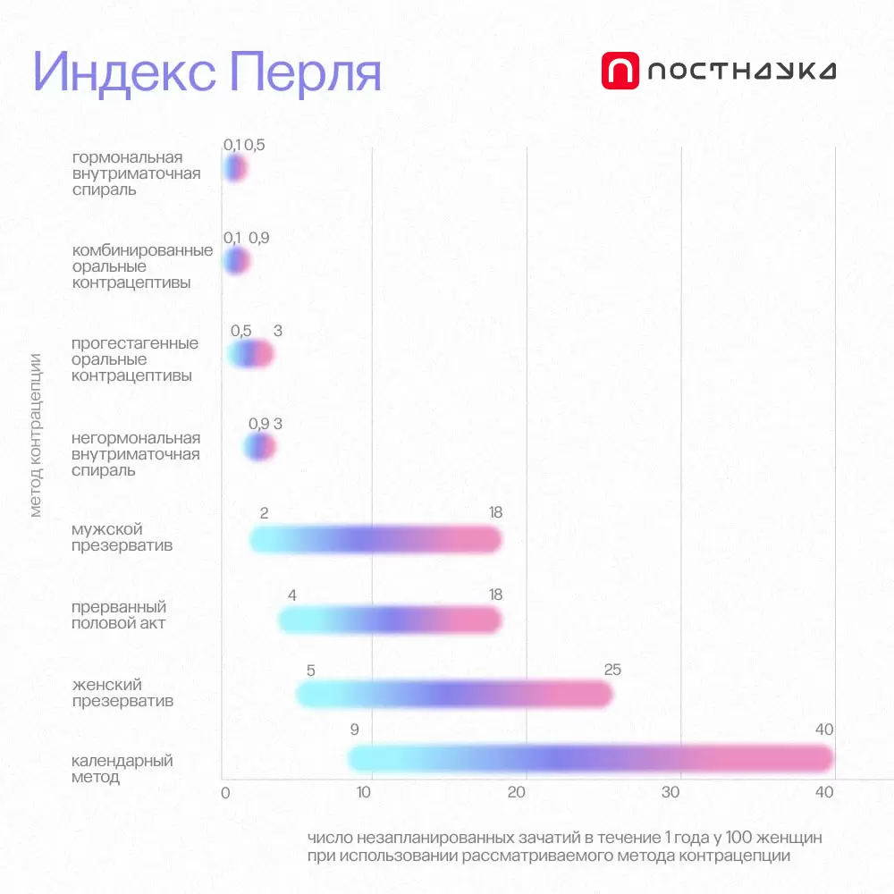 Рассмотрим, например, мужские презервативы. Их индекс Перля колеблется от 2 до 18, что указывает на широкий диапазон надежности. При корректном использовании вероятность зачатия составляет всего 2 случая на 100, однако, если презерватив просрочен или неправильно применен, риск беременности увеличивается до 18 случаев на 100.