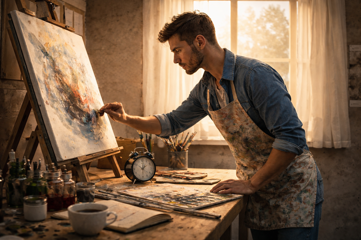 Основой дисциплины является повторение. Короткие ежедневные сессии результативнее редких, но длительных марафонов. Найдите 15–20 минут в день для творческого разогрева: рисуйте, делайте эскизы или просто освобождайте мысли. Эти небольшие действия генерируют большой прогресс и могут приводить к полноценным творческим сессиям.