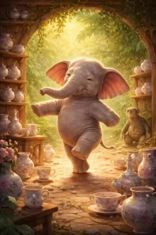 Каждый раз, когда слонёнок появлялся рядом с фарфоровой лавкой на краю джунглей, всё заканчивалось тем же: треск и осколки, оставляя Гришу в глубокой печали. Он ощущал, что его физическая мощь делает его неприемлемым в мире хрупкости.