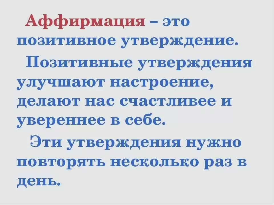- Точная формулировка: Аффирмацию стоит формулировать кратко и в настоящем времени, чтобы она четко отражала текущее состояние, а не превосходила его.